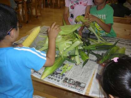 今日の給食「むしトウモロコシ」は、2年生が皮をむきました。上北沢小学校全員分のトウモロコシの皮を、1時間目に一生懸命むいて、給食室に届けてくれました。2年生の愛情がたくさん入ったトウモロコシの味は・・とてもおいしかったです。2年生のみなさん、ありがとうございました。