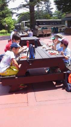 晴れています。移動教室最後のお弁当をおいしく食べています。
