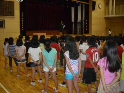 今日は、1学期終業の日です。子どもたちは学校中を丁寧に大掃除しました。終業式では、1年生から6年生まで、全員の変容と成長を確認しました。その後、各学級で先生から通知表をいただきました。子どもたちが下校するときには、全員の先生方が玄関で子どもたちを見送り、子どもたちからは「1学期ありがとうございました。」「よい夏休みを。」というすてきなあいさつが返ってきました。みんな元気で。また9月に会いましょう。