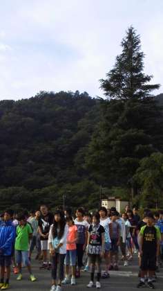 3日めの朝も晴天です。気持ちのよい空気に、大きく伸びをする子がいました。
