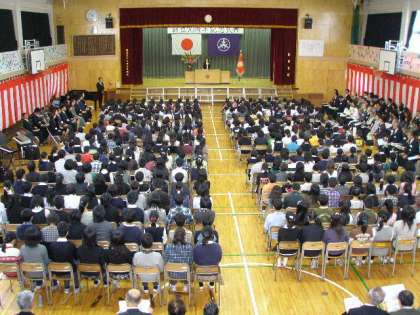 式典は厳かな雰囲気で行われ、子どもたちは祝辞を真剣なまなざしで聞いていました。
