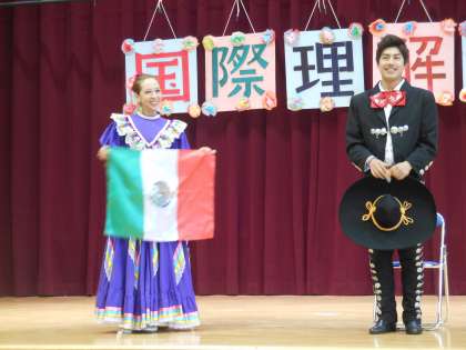 10月11日(土)2校時に国際理解集会を行いました。今学期は、メキシコのダンサーである「シルビア・ルバルカバさん」と日系3世の「堀田大地さん」をお招きしました。事前学習や集会の中で、使用している言語についてや一番人気の食べ物を知ってからダンスを見たり、お話を聞いたりしました。