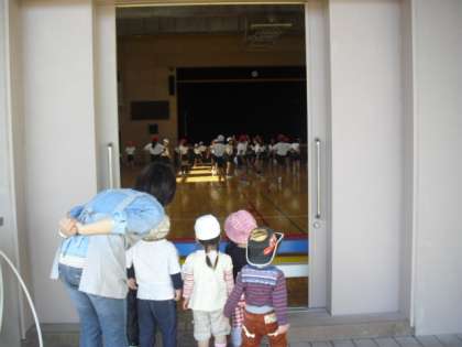 久しぶりの晴天。上北沢小学校にかわいいお客さまが遊びに来てくれました。上北沢保育園2歳児のみなさんです。芝生の上を元気いっぱいに走ったり、体育館で行われているお兄さん・お姉さんの体育の授業を見たり・・。にこにこ笑顔がお日さまに負けないくらい明るかったです。また遊びに来てくださいね。