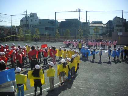 開校75周年記念日にあたる今日は、全校で航空写真の撮影をしました。子どもたちみんなの投票で決定したハトと75という数字がデザインされた図案が校庭に描かれ、カラーゼッケンを着けた子どもたちや教職員がラインの上に立ちました。撮影用のセスナ機が飛来し、無事に撮影が終了しました。そして今日の「上小開校75周年サプライズ給食」は、先日行われた75周年おめでとう集会で発表された「好きな給食ベスト3」がもとになった献立です。好天に恵まれた1日。改めて、上北沢小学校の開校75周年をお祝いする気持ちがあふれました。