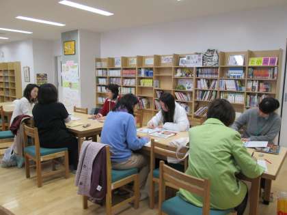 読み聞かせサークルの方々は、読み聞かせをが終わった後は、図書室に集まって話し合いをしていました。