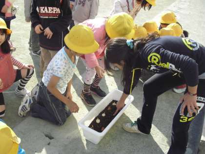 また、4月に入学する新1年生のために、チューリップの球根も植えました。
