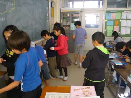 自分で立てた予想をもとに、教室や廊下で磁石につくものを探しました。