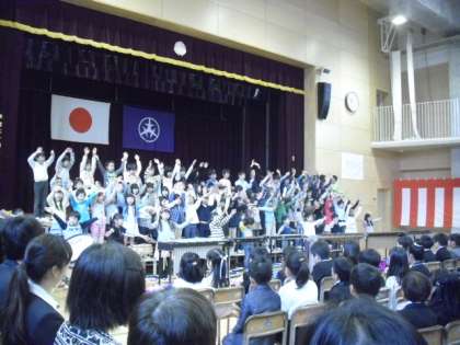 入学式では、校長先生の挨拶に合わせて、大きな声で挨拶することができました。