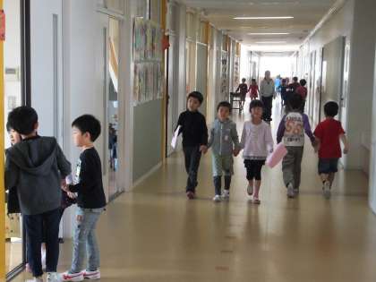 本日4月23日(木)、1・2年生合同で学校探検を行いました。2年生は、事前に学校にある施設がどんな役割をしているのか調べ、1年生に分かりやすく説明できるように学習しました。当日は2年生が優しく1年生の手を握り、丁寧に各施設を説明していました。1年生は、2年生の話をよく聞きながら、初めてみる施設に目を輝かせていました。1年生と2年生が楽しそうに探検している姿は、実に微笑ましいものです。