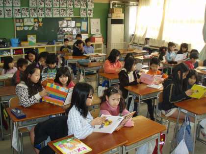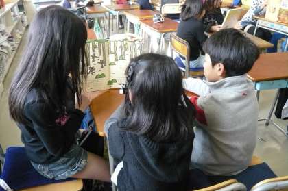 1月28日(木)、朝の学級の時間に、5年生が1年生に絵本の読み聞かせを行いました。なかよし班で一緒の人同士でペアを組みました。5年生は図書室で、1年生の好きそうな本を一生懸命に思い浮かべながら選び、練習をしてきました。今日はその成果を発揮して、1年生に楽しく音読をすることができました。読み終えた後に1年生が贈ってくれたかわいらしい拍手がとても嬉しく、また次回も頑張ろうという意欲につながりました。次回は、2月4日(木)の予定です。
