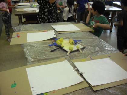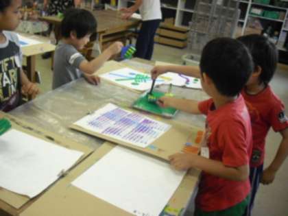 5月になり、快晴の空の下、運動会の練習が始まっています。また、今日は図工室にて1年生が運動会の旗を作りました。いろいろな道具を使い、カラフルな色を自由に選んで旗の模様を考えていました。23日(土)の運動会では、子どもたちの作った旗が会場を盛り上げます。楽しみです。
