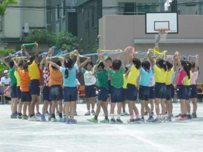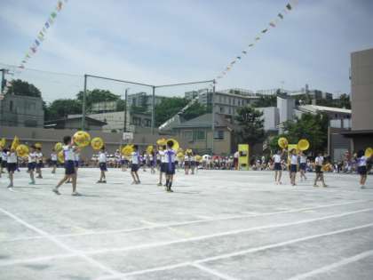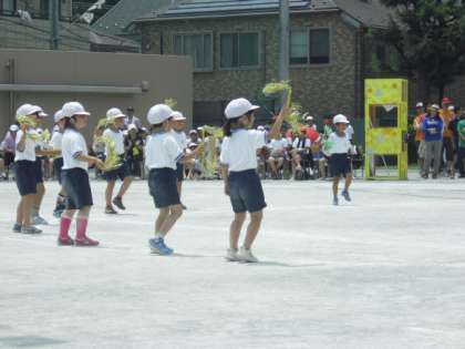 開会式を終え、3年生の「花笠おどり」では、会場から手拍子をいただきました。2年生の「ジャンピングダンス」では、子どもたちの笑顔が弾けていました。1年生「Let'goデイズニーワールド」では、バトンを笛やラッパに見立てた踊りや、闘牛士のように「オレッ!」と決めたポーズがかわいかったです。