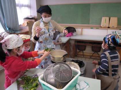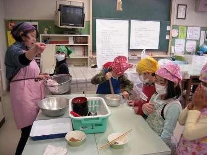 体験活動の一つとして、さつまいもを使ったすいとん作りを行いました。ご協力くださった保護者の皆様のお蔭で、安全にも十分気をつけておいしいすいとんを完成させることができました。片付けも力を合わせて行うことができました。