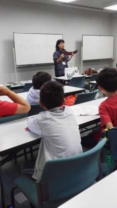 さぎそう学級の河口湖連合移動教室が始まり、山梨県富士山科学研究所に着きました。大きな松ぼっくりやモダマという長い種を見ました。これから種の模型を作ります。
