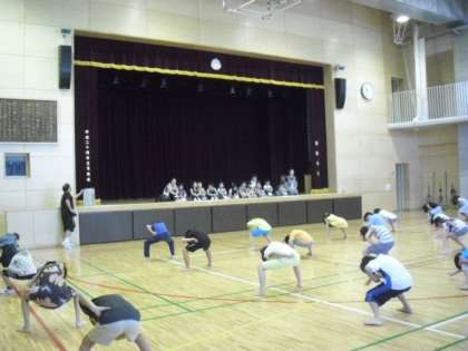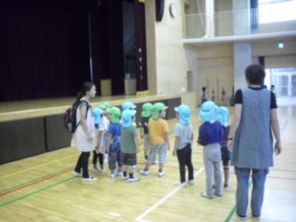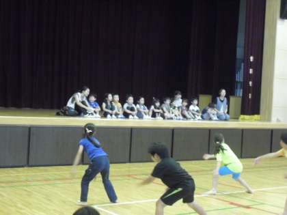 上北沢小学校に、近隣の保育園から11人の小さなお客さまが来ました。4年生が運動会で踊った「ソーラン」を見るために来たのです。保育園の秋の運動会で踊るのだそうで、暑い中でしたが、4年生の踊りをじっと見ていました。保育園のみなさん、秋の運動会、頑張ってくださいね。