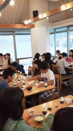 眠そうな子どもがいますが、みんな元気です。朝食をしっかり食べています。
