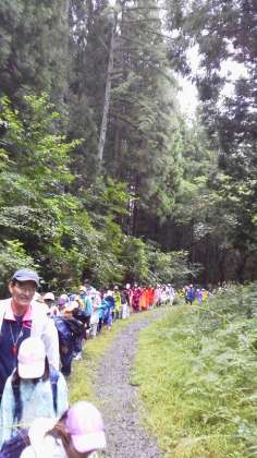 雨は降っていませんが、念のためレインコートを着て、ハイキング開始です。