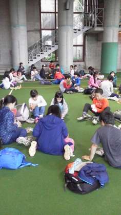 ハイキングで少し疲れた様子の子どもたちでしたが、お弁当を食べて、元気を取り戻し中です。