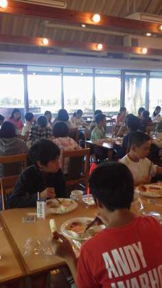今朝はパン食です。子どもたちはみんな元気で、よく食べています。
