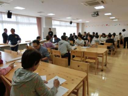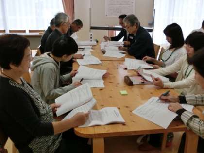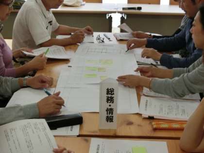 26日(土)10時より、上北沢小学校ランチルームにて「避難所運営訓練」が実施されました。今回の訓練では、震度6強の地震による上北沢地区の被害状況を想定し、避難所を開設した後、避難者をどのように誘導するか、また、避難所としてどのようなルールを設けるか等を話し合いました。多くの方々が参加され、「総務・情報」「避難所」「給食・物資」「救護・衛生」の4つの班に分かれて、活発に意見交換をされていました。