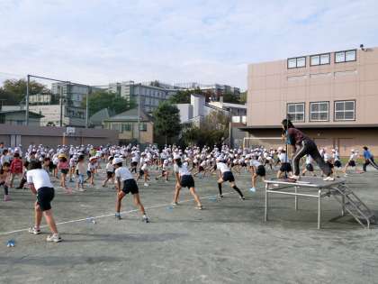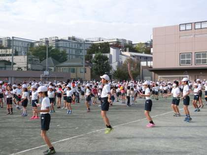 今朝の体育朝会では、全校で短なわ跳びの持久跳びに取り組みました。1分間引っかからずに跳べるか挑戦しました。また、運動委員会の子どもたちが、「あやとび」「かえしとび」「二重とび」「はやぶさ」などの技を披露し、それを見た子どもたちが思い思いに挑戦していました。今月17日(月)からは、「なわとび月間」が始まります。みんなで頑張りましょう。