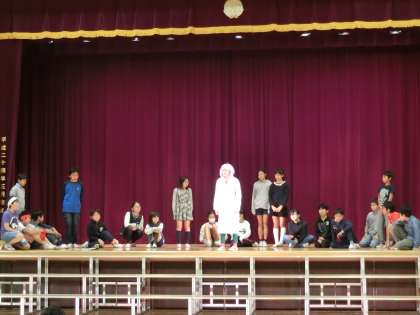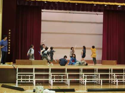 各学年の学芸会練習が、盛り上がりを見せています。衣装を着けたり小道具や背景を使ったりしています。大きな声を出して、大きく動くことができるよう、みんなで力を合わせています。今回は、3・2・6年生の練習風景を少しだけ・・お知らせします。いよいよ来週末が本番です。子どもたちみんな、体調をくずさないよう気を付けましょう。