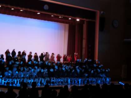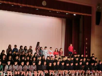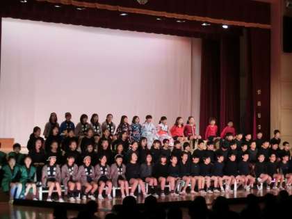 4年生は「ソメコとオニ」です。言い回しが難しいセリフをはっきりと、心を込めて伝えていました。劇全体に迫力があり、全員の力を結集して創り上げられたことが分かります。