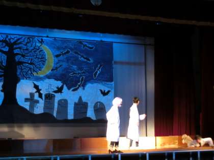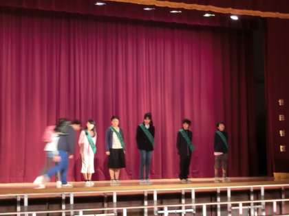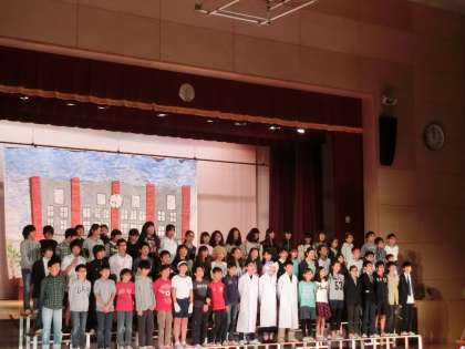6年生は「仲間と守れ!ぼくらの町」という創作劇です。台本から演出、背景や衣装に至るまで、自分たちで考え協力して創り上げました。見ている子どもたちにも大人の方々にも、その熱意と協力が生み出した心は、しっかり伝わったことと思います。