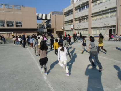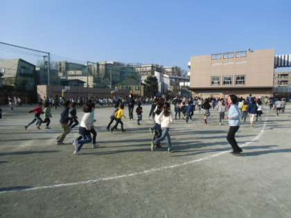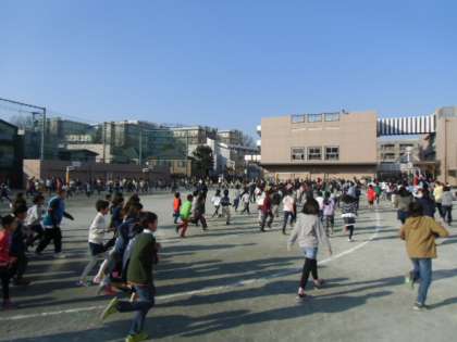 今日から「マラソン週間」が始まりました。朝、全校の子どもたちが、5分間マラソンに取り組みます。低・中・高学年別に、校庭を3つのコースに分けて、同じペースで走り続けることを目指します。火・水・木曜日の朝は、みんなでマラソンを頑張りましょう。
