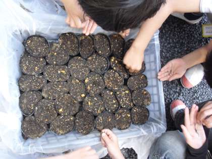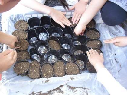種まきをしている子どもたちはとても優しい表情でした。小さな種が風で飛ばないようにやさしく植えていました。