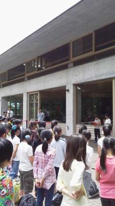 いよいよ3日間の移動教室の始まりです。立派な態度で開室式が行われています。