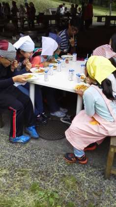 すべての班で、美味しいカレーが完成しました。よかったです。みんなモリモリ食べています。