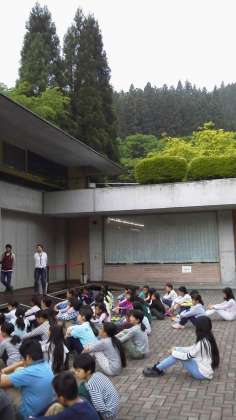 少し雲っていますが、ひんやりした山の空気が気持ちのよい朝です。眠そうな子供もいますが、みんな元気です。