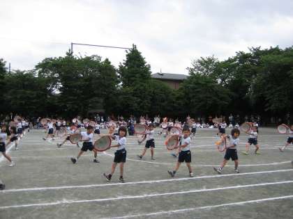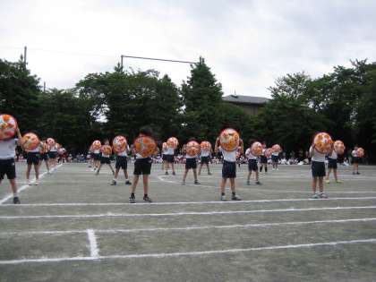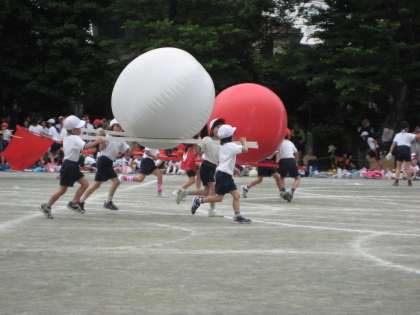 2年 「上小花笠おんど」「力を合わせて大玉はこび」「50メートル走」