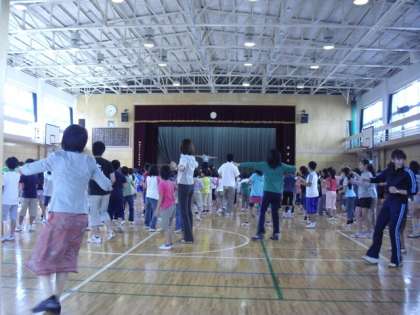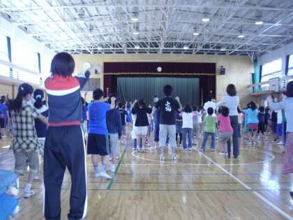♪ライディーン♪にあわせて全員でダンスをしました。『ライディーンステップ』が体育館にひびきました。朝から音楽を聞きながら体を動かし、さわやかな1日になりました。