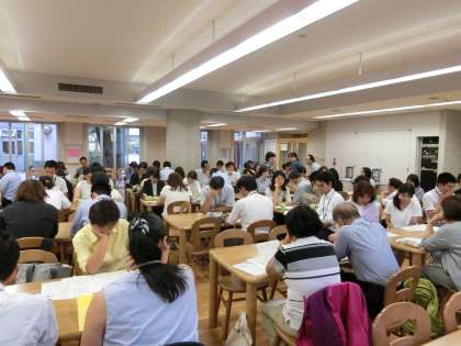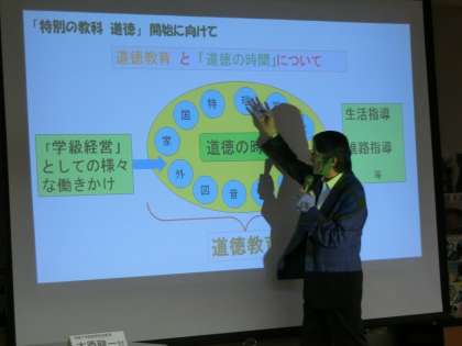 15日(水)に八幡山小学校にて「みどりの学び舎 合同研修会」があり、上北沢小学校・経堂小学校・八幡山小学校・緑丘中学校の全教員が集まりました。まず、世田谷区が実施した学習確認調査の結果を分析し、教科ごとに小学校・中学校それぞれにおける学力向上にむけた課題を確認しました。続いて「特別の教科 道徳」に関する講演を聞き、学びを深めました。最後に全教員が教科に分かれて話し合いを行いました。みどりの学び舎として全教員が交流や学びを深めることができ、貴重な機会となりました。