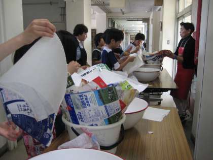 6月7日 4年生は、区立山崎小学校の伝統工芸室で紙漉き体験をしました。
