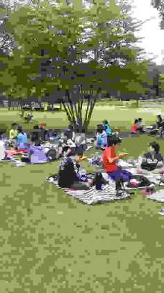 なんと、早くもお弁当です。行動班で仲良く食べています。