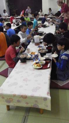 お昼ごはんが早かったこともあり、子どもたちはモリモリ食べています。次々とごはんをおかわりしています。