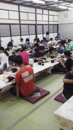今夜は、ハンバーグ等の洋食です。子どもたちは、モリモリ食べています。食事の後は、いよいよ肝だめしです。