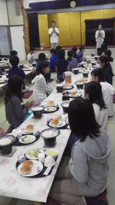 朝食は、パンです。あくびをしていた子どもたちも、しっかり食べています。