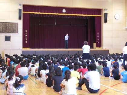 今日から2学期が始まりました。校内に響く元気な子供たちの声、明るい笑顔。学校に命が吹き込まれたようでした。始業式での話の聞き方がとても立派で、頑張っている子供たちに感心しました。休み時間には、たくさんの子供たちと先生方が校庭で遊んでいる姿がほほえましかったです。下校時には、強い日差しのもと、子供たち・先生方・保護者の皆様が、最後まできちんと引き渡し訓練を実践されている様子が素晴らしいと思いました。上北沢小学校は、よい2学期のスタートを切ることができました。