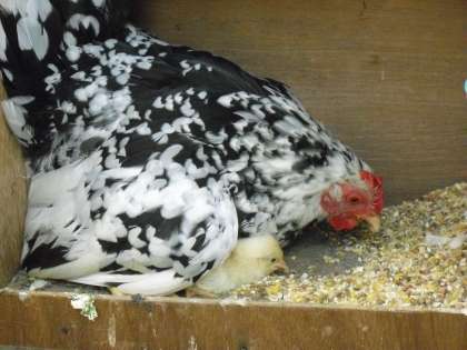 6月21日朝、めんどりのゴマが温めていた卵が孵り、かわいいひよこが誕生しました。しばらくはそっとしておいて見守った方がよいということでしたのでこれまで公の発表は控えていましたが、すくすくと順調に成長し、この頃では元気に小屋の中を歩き回り、ピーッピーッとかわいらし鳴き声も聞かせてくれています。