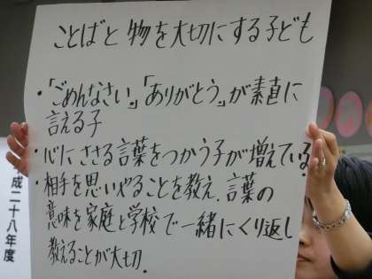 14日(金)午後、八幡山小学校を会場として、「みどりの学び舎 合同学校協議会」が開催されました。みどりの学び舎4校(緑丘中学校・経堂小学校・八幡山小学校・上北沢小学校)の教員・保護者・地域の方々が意見交換を行う会です。はじめに、「みどりの学び舎 活動報告」があり、続いてグループ懇談、テーマは「みどりの学び舎で育ってほしい子供たち」でした。最後に各グルーブから報告がありました。子供たちの健やかな成長を願う皆様の思いが伝わってきた時間でした。