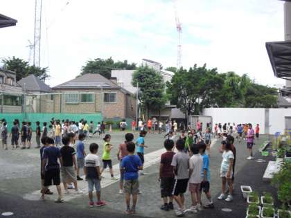 子どもたちはさっそく休み時間に長縄をして遊んでいました。