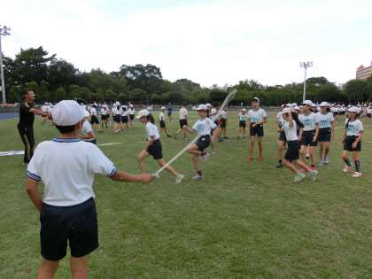 連合運動会に向けて、一人一人が個人参加種目である100m走・走り幅跳び・走り高跳び・50mハードル走の練習に取り組んできました。そして、学級ごとでは、3分間の長縄跳びに取り組んできました。1組も2組も200回を超える記録が出て、本当によかったです。