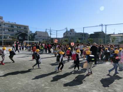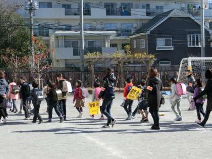 10日(土)に、地域班による集団下校訓練が行われました。これは、大型台風の接近が予想されるときなど、個別での下校が困難な状況を想定した訓練です。子供たちは教室から校庭に移動し、12の地域班に分かれます。人数確認を行った後、整列し、まとまって下校します。当日は、PTA交通校外委員の方々が地域班に分かれた子供たちの下校に付き添ってくださいました。ありがとうございました。