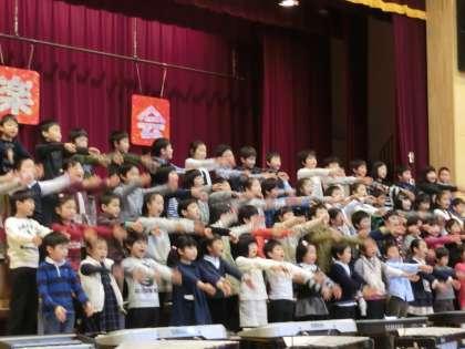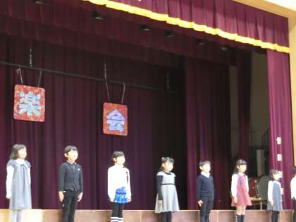 1年生の元気な「はじめのことば」で、音楽会が始まりました。最初に登場した1年生は、自分が担当したいろいろな楽器を熱心に練習し、すてきな合奏を披露していました。2年生は、「ドレミの歌」に振り付けを取り入れていました。全員の息がぴったりと合っていました。