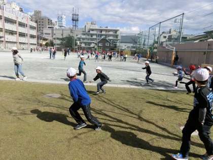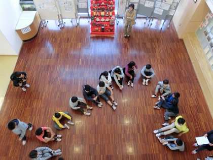 なかよしタイムは、1年生から6年生までの全校児童が、異学年グループの14班に分かれ、それぞれの班ごとで仲よく遊ぶ活動です。