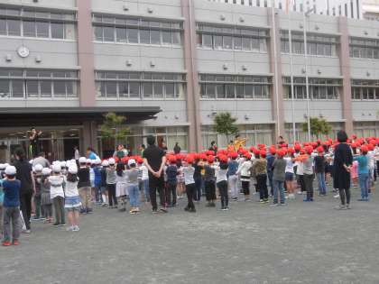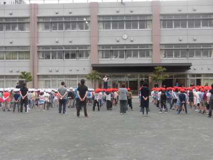 今日から運動会特別時間割がスタートします。今朝は全校朝会だけでなく、体育朝会も行いました。整列の仕方や準備体操の練習をしました。
